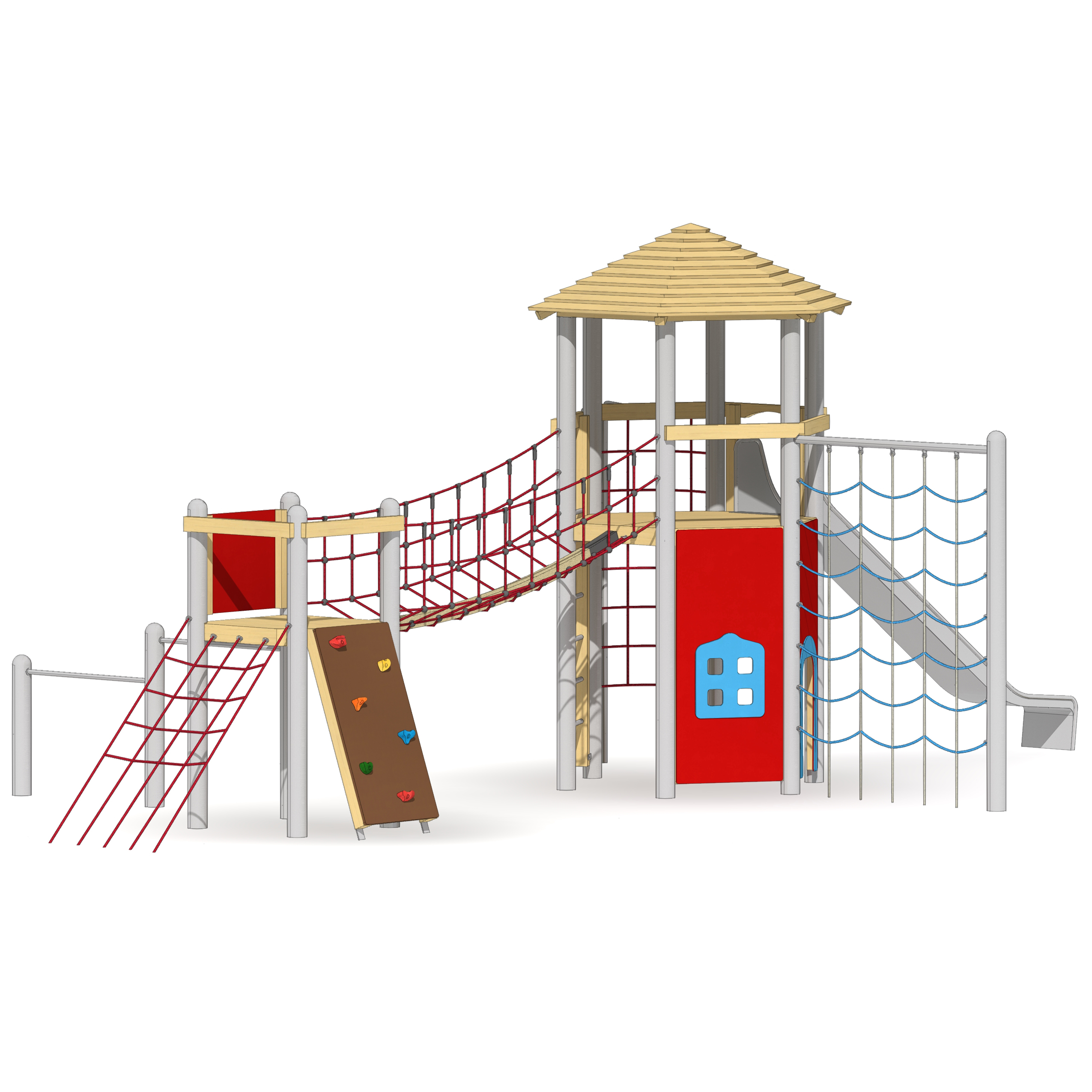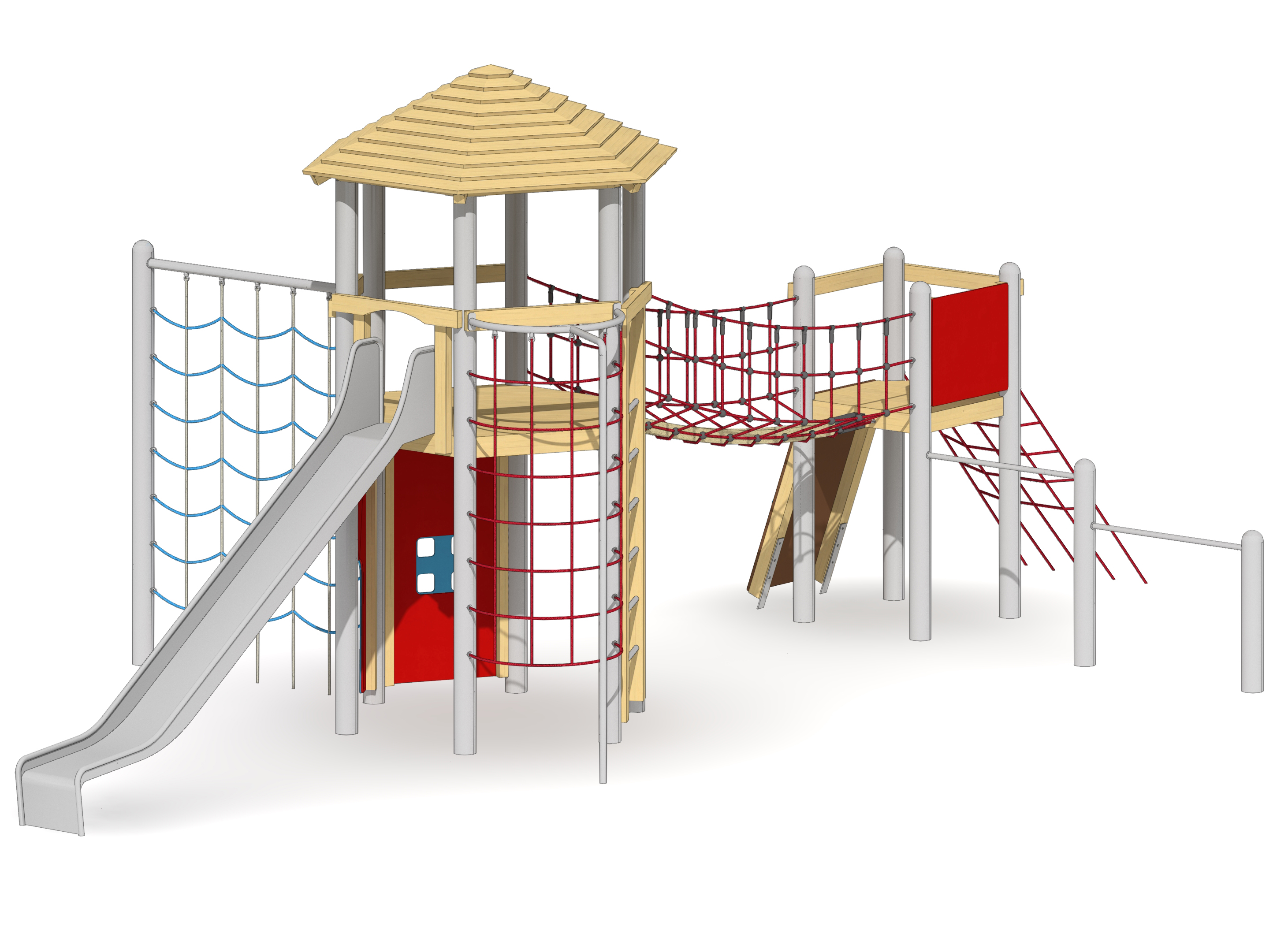 Balanciergeräte, balancieren, Brücke, Klettergeräte, klettern, Podeste, Balkon, Plattform, Rutsche, rutschen, Seil, Seilspiel, Turm, Türme, Turngeräte, turnen
