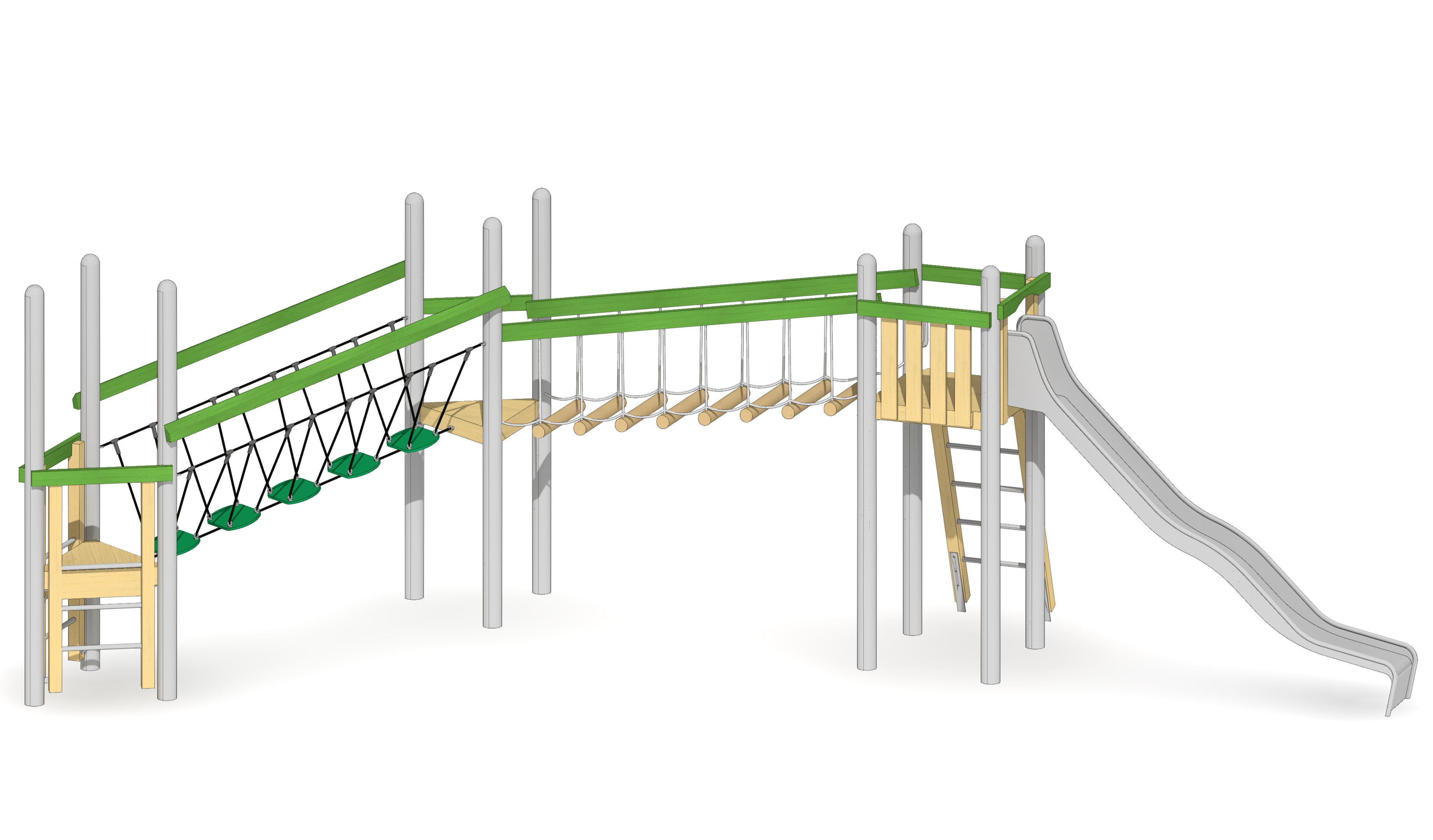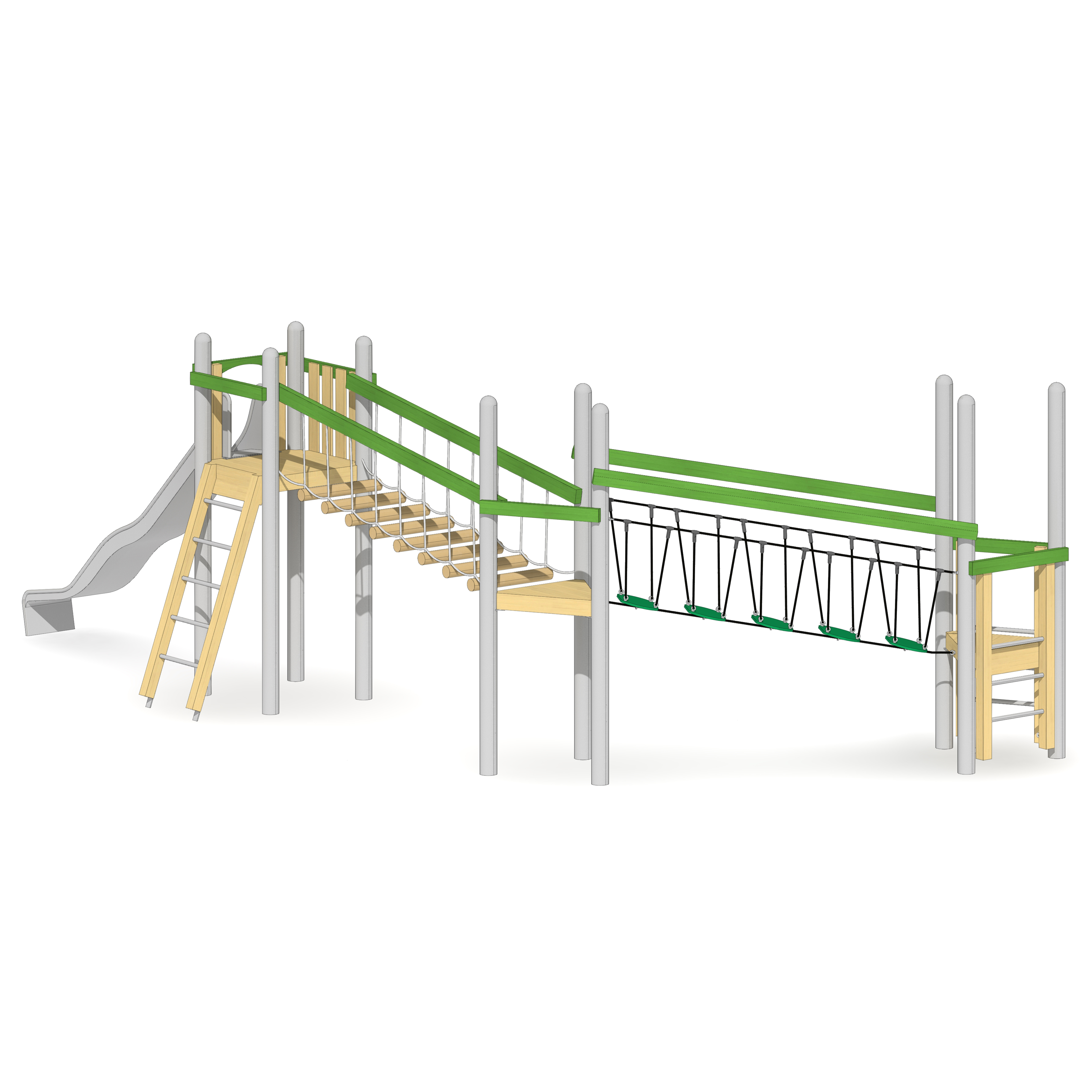 Balanciergeräte, balancieren, Brücke, Klettergeräte, klettern, Podeste, Balkon, Plattform, Rutsche, rutschen, Turm, Türme