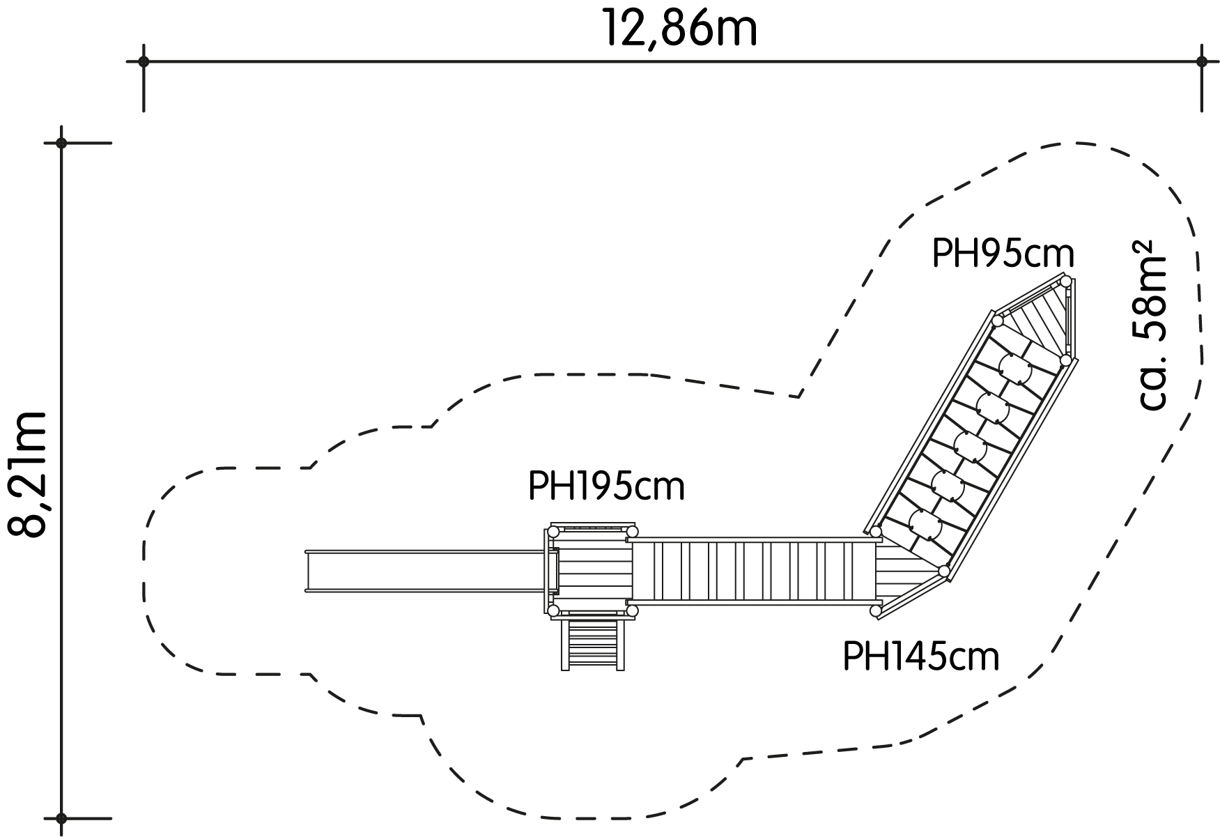 | Sicherheitsbereich mind.: | 1286 cm x 821 cm / 58 m² |