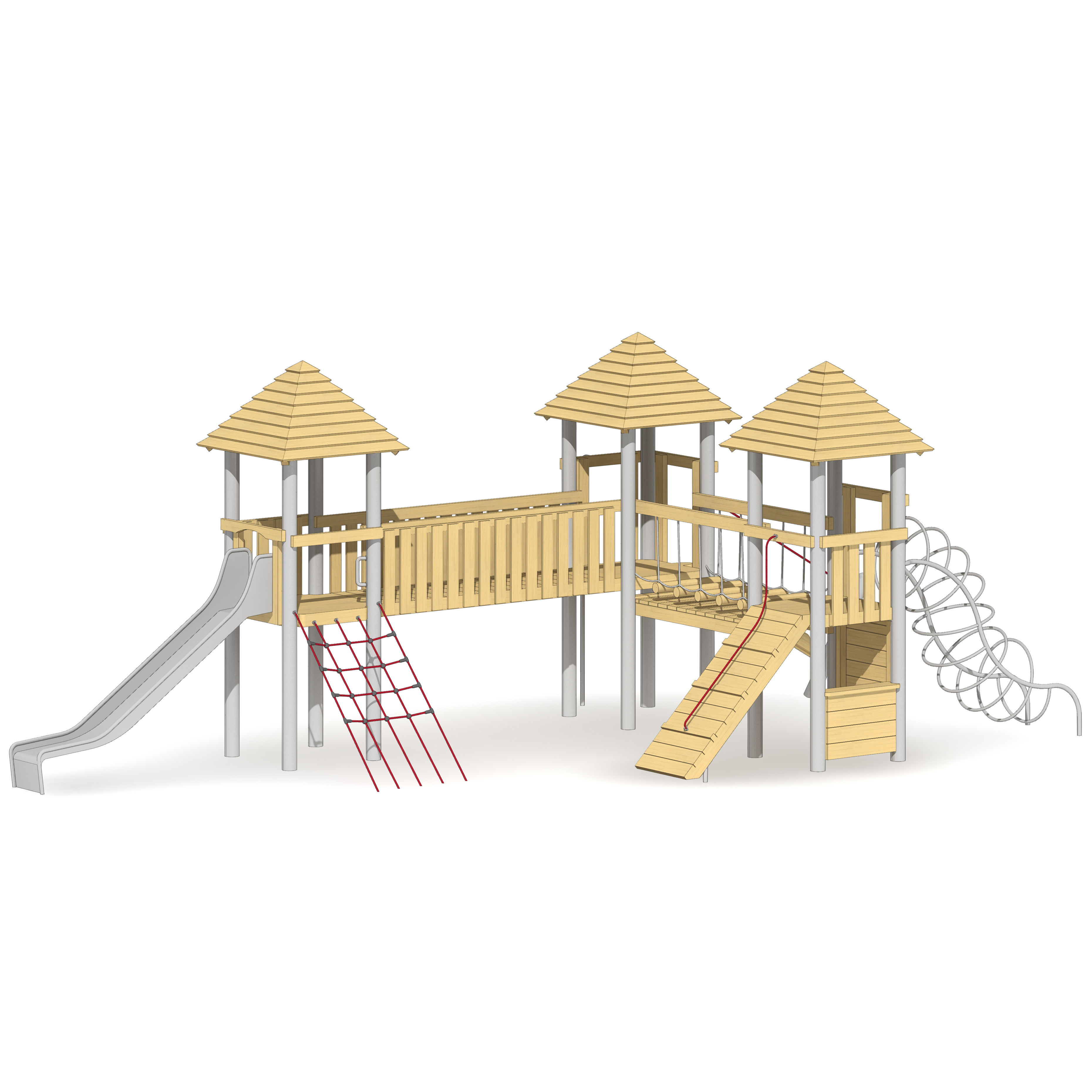 Balanciergeräte, balancieren, Brücke, Klettergeräte, klettern, Podeste, Balkon, Plattform, Rollenspiel, Rutsche, rutschen, Turm, Türme, Turngeräte, turnen, Versteck, verstecken