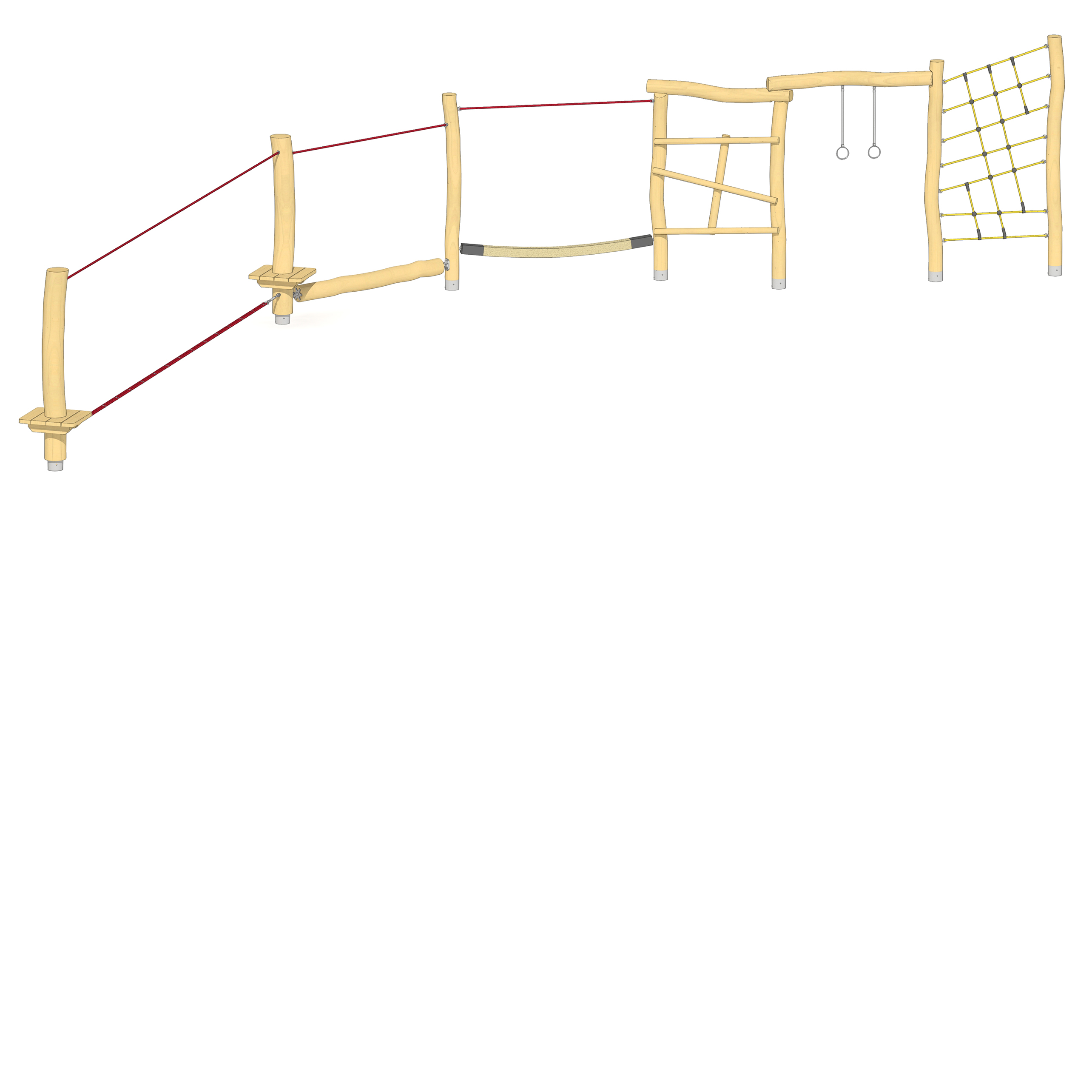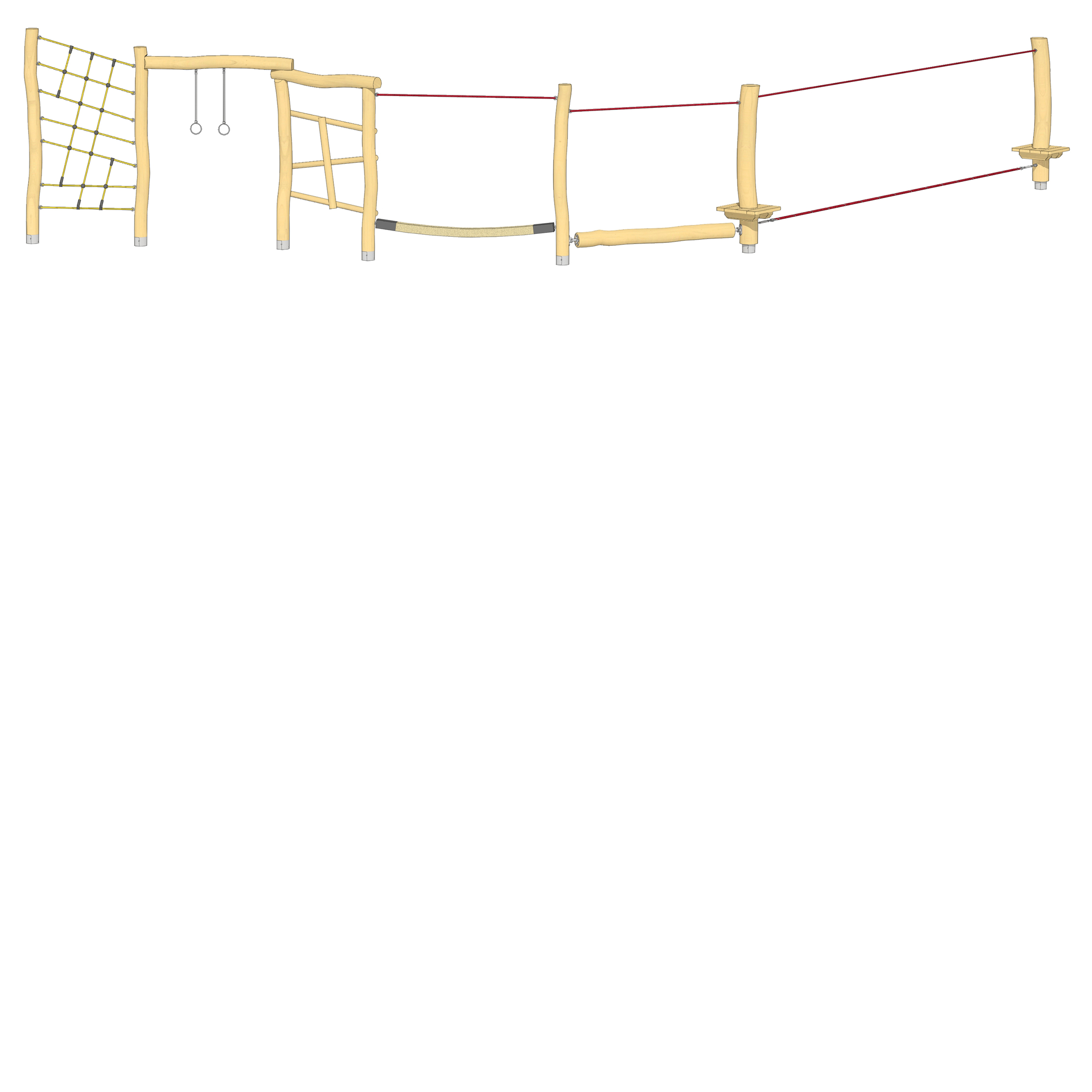 Balanciergeräte, balancieren, Hangel, hangeln, Klettergeräte, klettern, Podeste, Balkon, Plattform, Seil, Seilspiel, Turngeräte, turnen